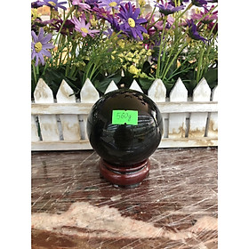 Hợp mệnh Thủy - Mộc Chất liệu: Đá thạch anh đen Kích thước: Đường kính 14,5 cm Khối lượng: 4,2 kg Bộ sản phẩm gồm: 1 quả cầu và 1 đế gỗ Quả cầu phong