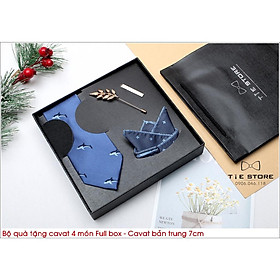 ✨QUÀ TẶNG DOANH NHÂN CAO CẤP BẢN TRUNG 7CM - Full box kèm túi xách, màu xanh họa tiết