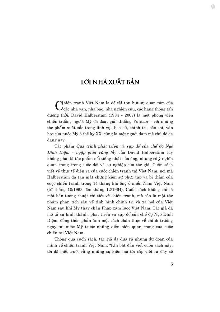 Tác phẩm Quá trình phát triển và sụp đổ của chế độ Ngô Đình Diệm - ngập giữa vũng lầy của David Halberstam tuy không phải là tác phẩm nổi tiếng nhất của ông, nhưng có ý nghĩa quan trọng trong cuộc đời và sự nghiệp của tác giả.