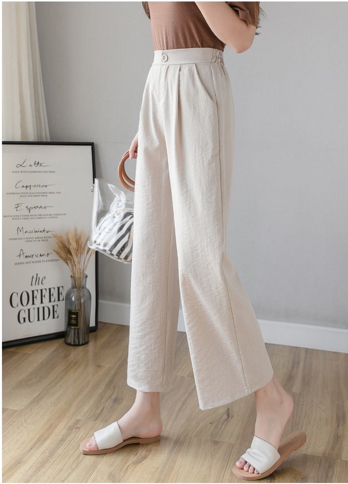 THÔNG TIN SẢN PHẨM:   - Sản phẩm: Quần dài nữ - Chất liệu: Linen - Đặc điểm: Ống rộng, Đũng ngắn, Lưng thun - Kích thước: M, L, XL, 2XL - Màu sắc: Trắng,Đen,Be,Muối