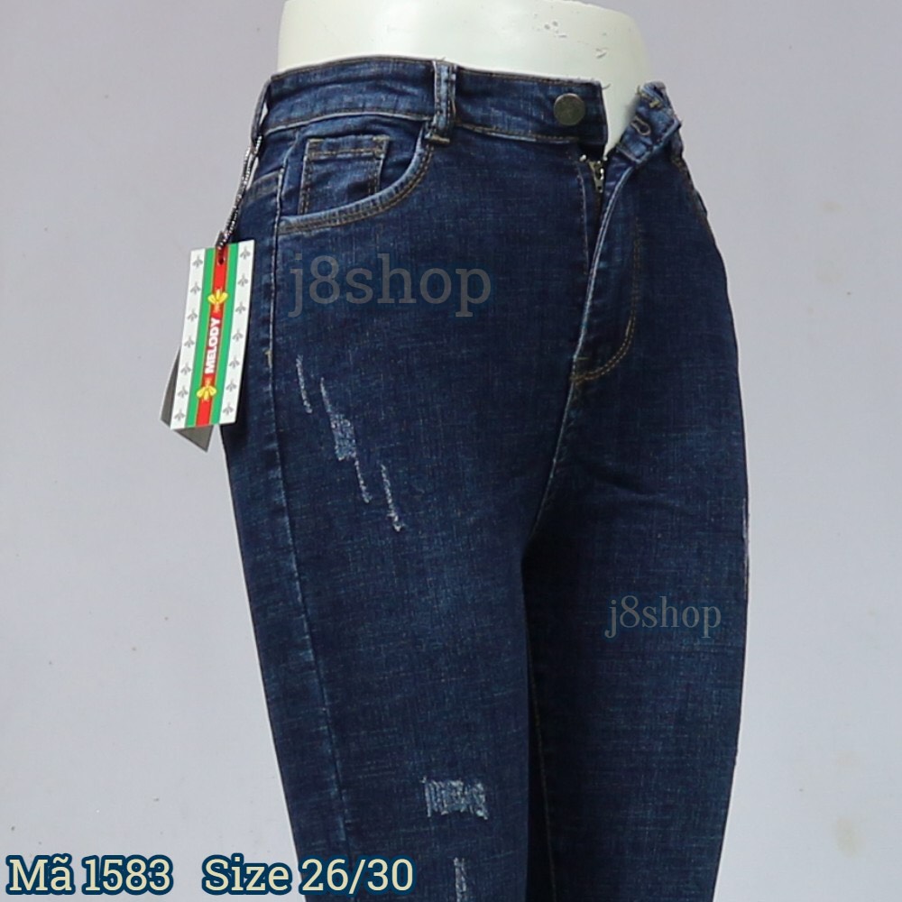 MÔ TẢ SẢN PHẨM – Quần jean nữ lưng siêu cao có cúp ngang – Chất liệu cotton có co giãn – Kiểu cào xước nhẹ – Tua lai – Màu xanh 3 màu đậm nhạt – Size 26/30 Hướng dẫn chọn size và sử dụng * Tùy theo loại sản phẩm mà có size khác nhau, nên xin khách yêu chọn size cho đúng để shop giao hàng thuận tiện. • Size 26: Từ 35kg đến 42kg (Tương đương size S) • Size 27: Từ 43kg đến 45kg (Tương đương size M) • Size 28: Từ 46kg đến 48kg (Tương đương size L) • Size 29: Từ 49kg đến 51kg (Tương đương size L) • Size 30: Từ 52kg đến 55kg (Tương đương size XL) * Lưu ý: - Bảng size này chỉ mang tính tham khảo, sản phẩm có thể tồn tại sai số đo 2-3cm, nếu không chắc hãy chat với shop trước khi đặt hàng. - Khách yêu nên tăng size nếu khách dáng MẬP VÀ THẤP HOẶC khách yêu nên giảm size nếu dáng GẦY VÀ CAO. - Nếu khách yêu có bất kỳ vấn đề nào như giao hàng chậm, hàng hoặc bị lỗi, bạn vui lòng liên hệ với chúng tôi trước theo thông tin bên dưới - Khách yêu vui lòng không đánh giá sản phẩm quá vội vàng mà hãy đợi shop trong phản hồi nhé. Chúng tôi sẽ cố gắng hết sức để giải quyết vấn đề cho bạn khi nhận được phản hồi từ bạn. - Hãy đánh giá 5* nếu bạn thấy ưng ý với sản phẩm nhận được vì đó là động lực giúp shop phát triển hơn * Hướng dẫn giặt sản phẩm - Không dùng thuốc tẩy - Giặt với nước ấm khi cần thiết - Không giặt chung với quần áo trắng - Lộn trái sản phẩm trước khi giặt - Không giặt khô