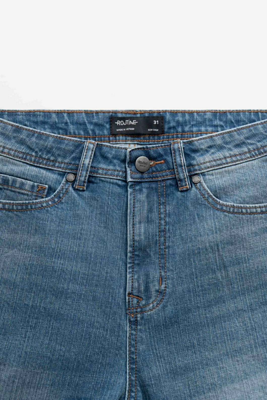 Quần denim nam Form Slim cropped - RT 10S25DPA105C | ROUTINE CÀ MAU Đặc điểm nổi bật Form : Slim cropped Fabric : Denim Gender: Nam Collection: Core Thông tin chi tiết: Mẫu quần denim