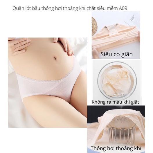 - Quần lót bầu , chip bầu cạp chéo A09 THÔNG HƠI - KHÁNG KHUẨN - THOÁNG KHÍ - SIÊU MỀM MẠI với chất liệu mỏng và mềm mại có khả năng thấm hút mồ hôi nhanh chóng là sự lựa chọn hoàn hảo cho các bà bầu và các mẹ sau sinh