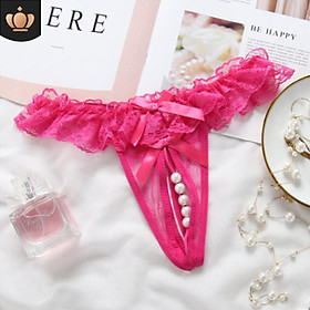 ✨Quần lót nữ xẻ đáy đính hạt cườm - Màu hồng đậm