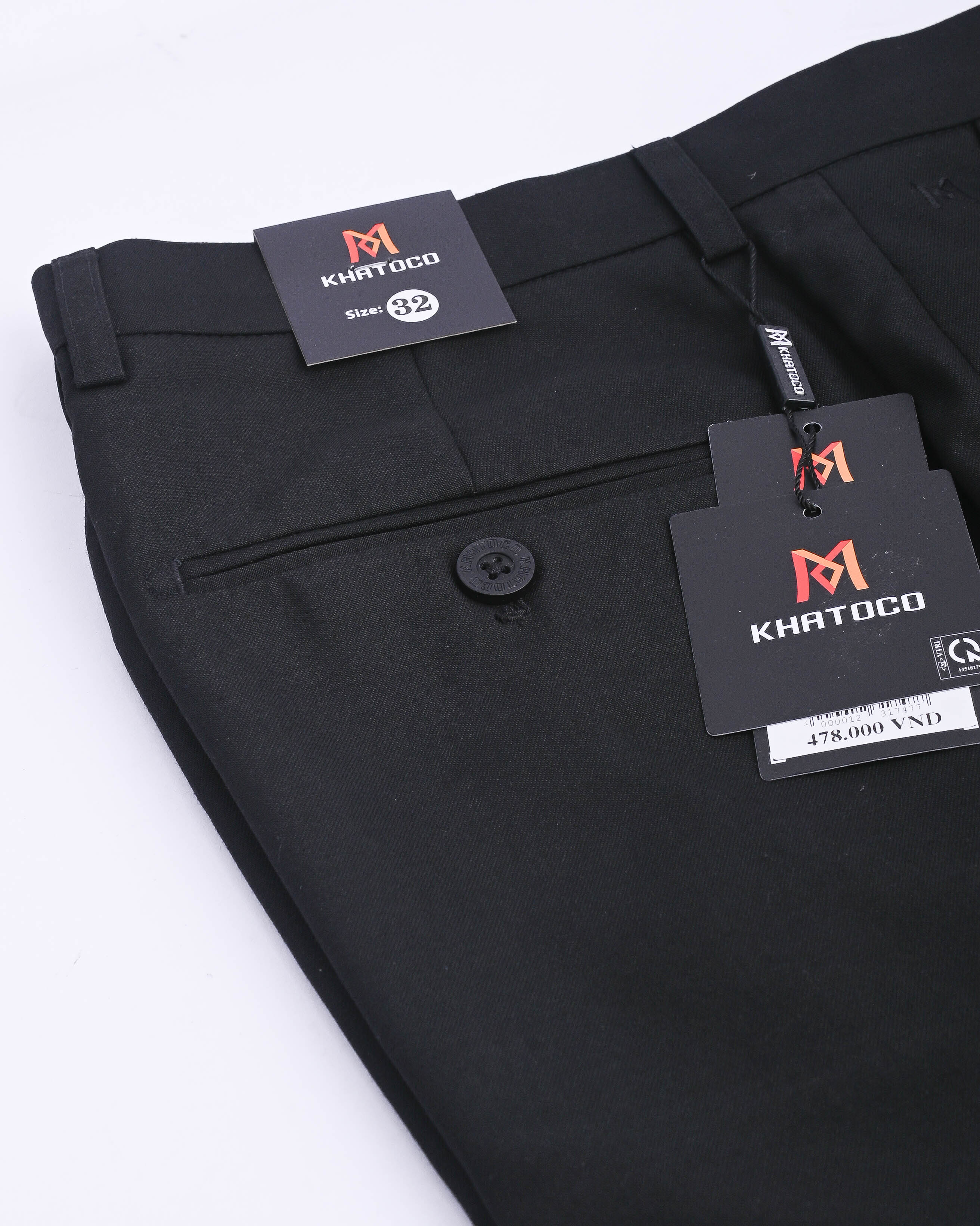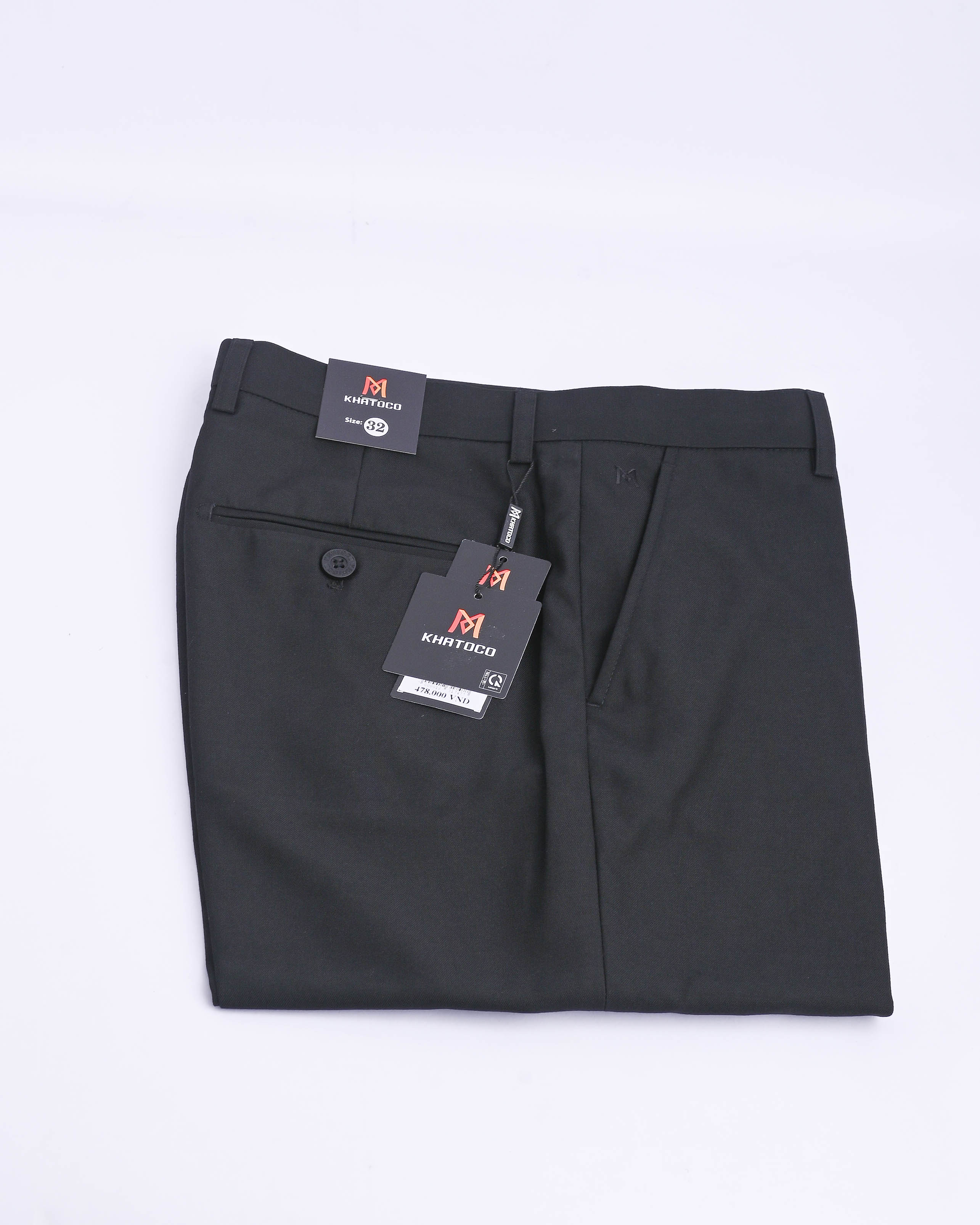Mô tả sản phẩm – Quần tây nam Khatoco không ly màu đen Chất liệu cao cấp - Thành phần: 70% Terylon, 30% Rayon. - Vải mềm mịn, thoáng khí, bền màu và hạn chế