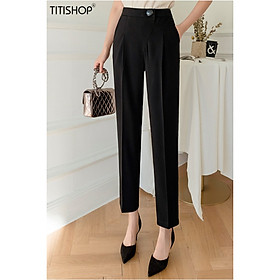 Quần tây baggy nữ lưng cao màu đen dáng dài phối 2 khuy bấm phối sơ mi đi học làm