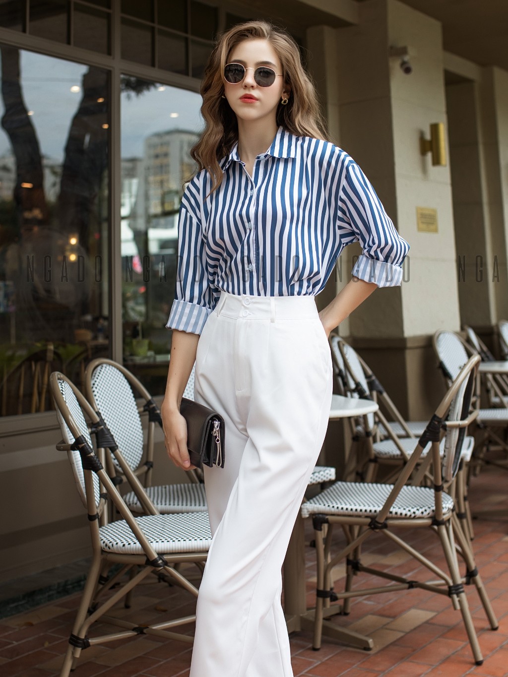 Cách phối quần trắng ống rộng sao cho vừa cao vừa xinh