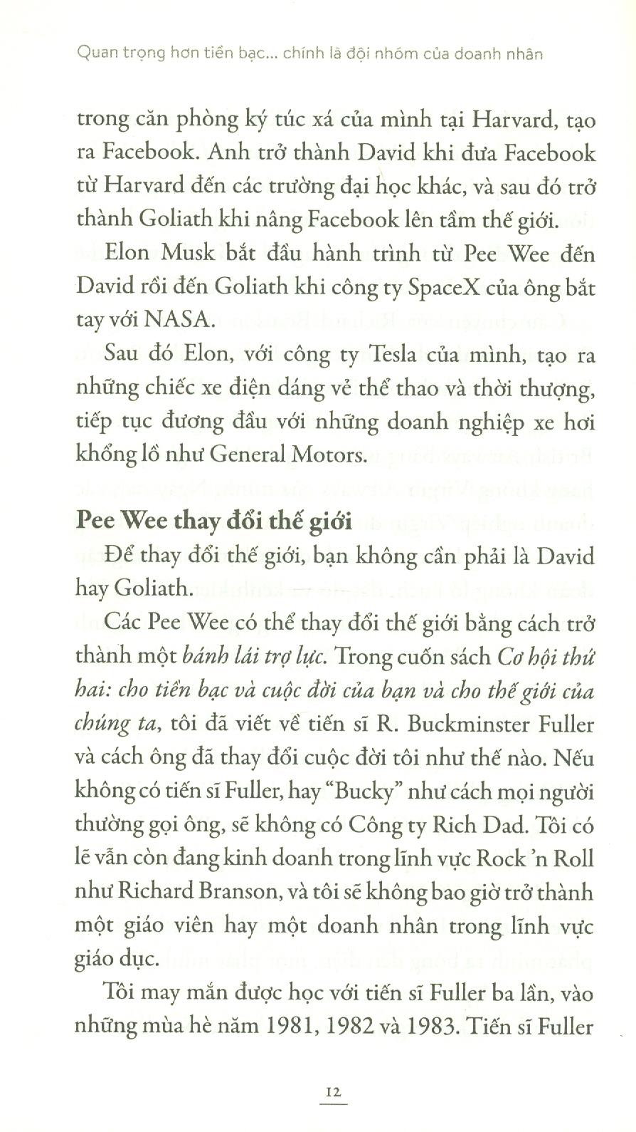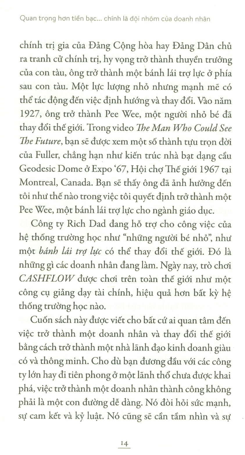 Theo nhiều nhà xã hội học, điều quan trọng nhất trong cuộc sống là mạng lưới xã hội của một người. Nói cách khác, những người xung quanh chúng ta, cộng sự, đội nhóm, bạn bè, cùng với những người chúng ta tìm kiếm lời khuyên và hướng dẫn, có thể tạo nên sự khác biệt giữa thành công và thất bại. Và như tác giả Robert Kiyosaki đã mô tả trong bộ sách “Dạy con làm giàu”, nếu những người xung quanh bạn có tư duy của người nghèo thì rất có thể bạn sẽ trở thành hoặc vẫn là người nghèo. Trong cuộc sống kinh doanh, chính đội nhóm sẽ quyết định xem ý tưởng triệu đô của bạn có mang lại cho bạn khoản tiền triệu đô hay không.