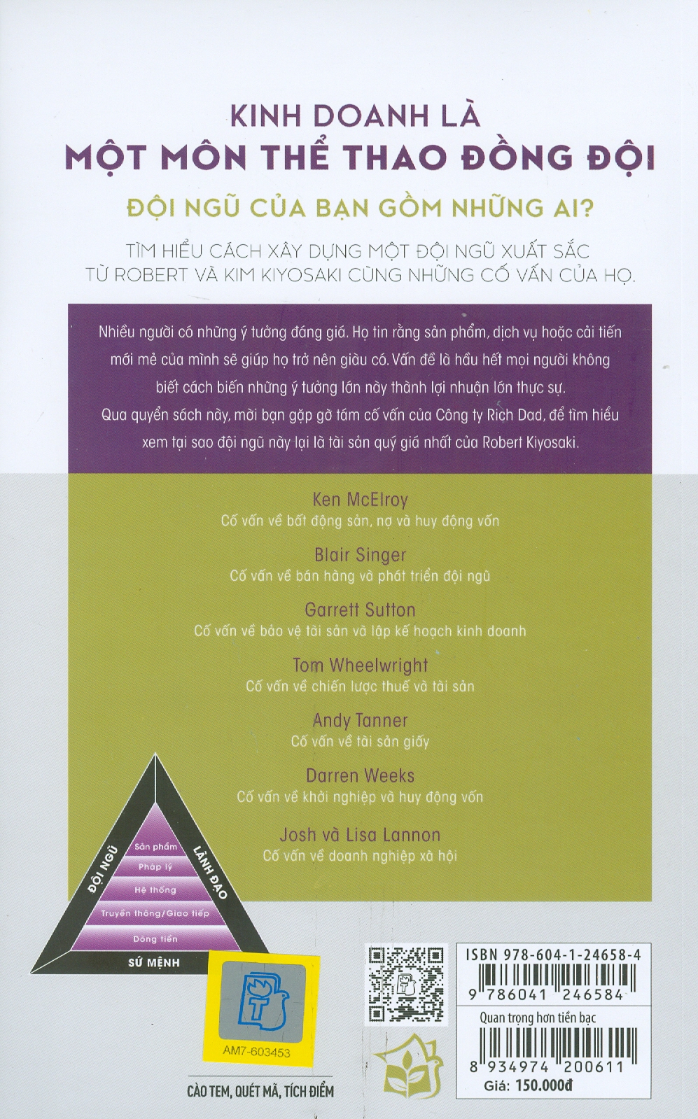 Trong “Quan trọng hơn tiền bạc”, Robert hợp tác với những cố vấn đáng tin cậy nhất của mình, những người không chỉ đóng góp thông tin về điểm mạnh và tài năng mà họ mang lại cho nhóm, mà còn chia sẻ những bài học kinh nghiệm cá nhân chân thành và sâu sắc từ vai trò chủ sở hữu hoặc CEO doanh nghiệp và nhà đầu tư. Độc giả sẽ có cơ hội gặp tất cả Cố vấn Rich Dad của Robert để hiểu tại sao họ là một trong những tài sản quý giá nhất của ông.