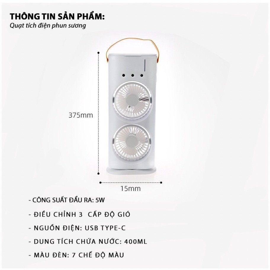 ✨Quạt Phun Sương, Quạt Hơi Nước 2 Tầng , Quạt Tích Điện, Có Đèn Led, Quạt Để Bàn Mini Làm Mát Và Tạo Ẩm Không Khí - Hàng Nhập Khẩu