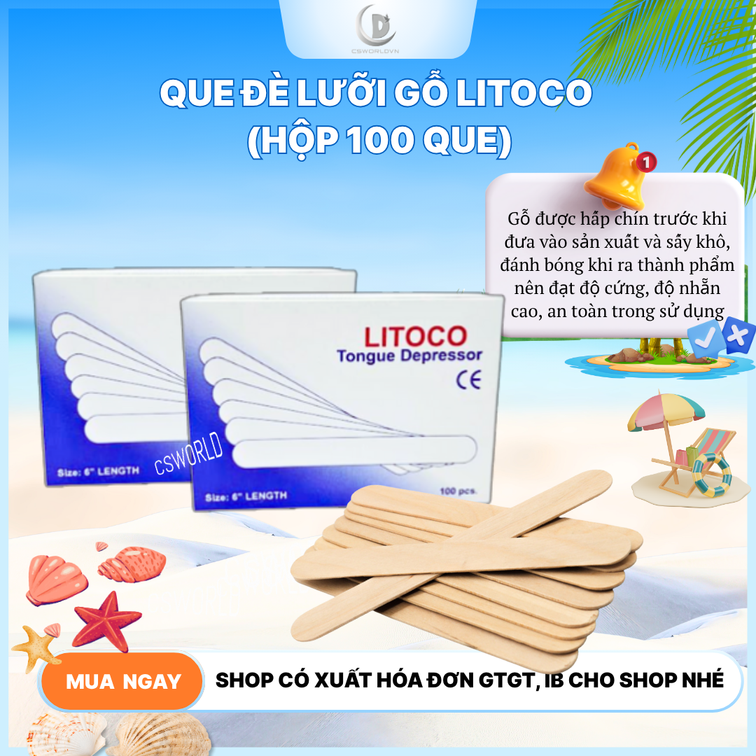 ✨QUE ĐÈ LƯỠI GỖ LITOCO HỘP 100 Que