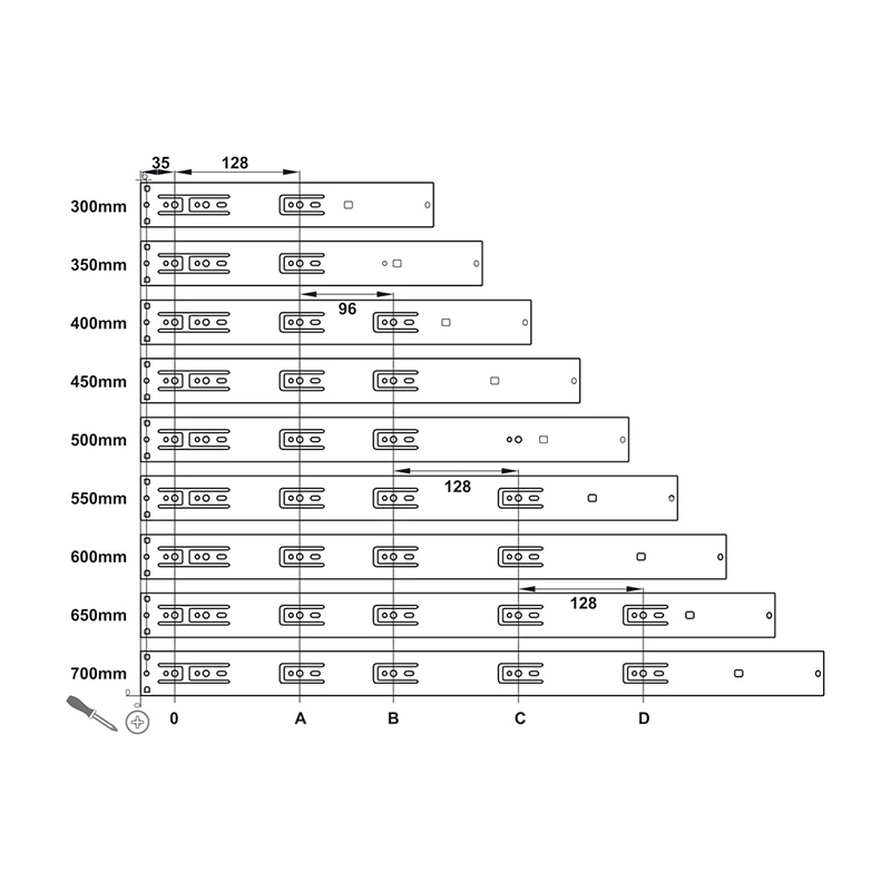 ✨Ray trượt, ray bi 3 tầng giảm chấn Hafele 500mm - 494.02.065