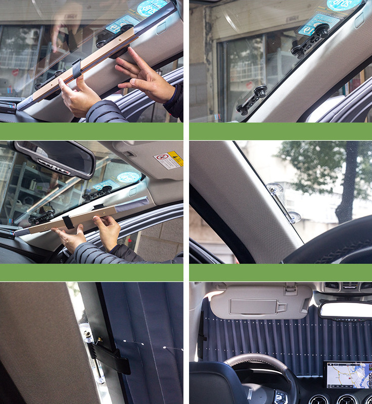- Rèm được cố định bên trong kính ở 2 góc sát trụ A bởi 2 cốc hút chân không được nhập khẩu từ Đức, cho độ hút cực kỳ chắc chắn bất chấp nhiệt độ kính có lên cao đến bao nhiêu.