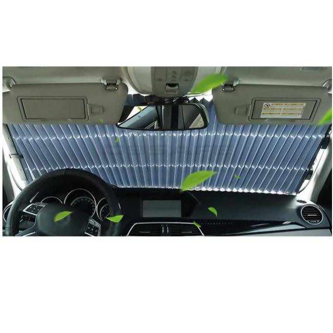 Rèm Che Nắng Kính Lái Ô Tô Tráng Nhôm Cách Nhiệt – Xếp Gọn Tiện Lợi Rèm che nắng kính lái ô tô thiết kế dạng rèm kéo, cấu tạo gồm các lá nhôm phủ