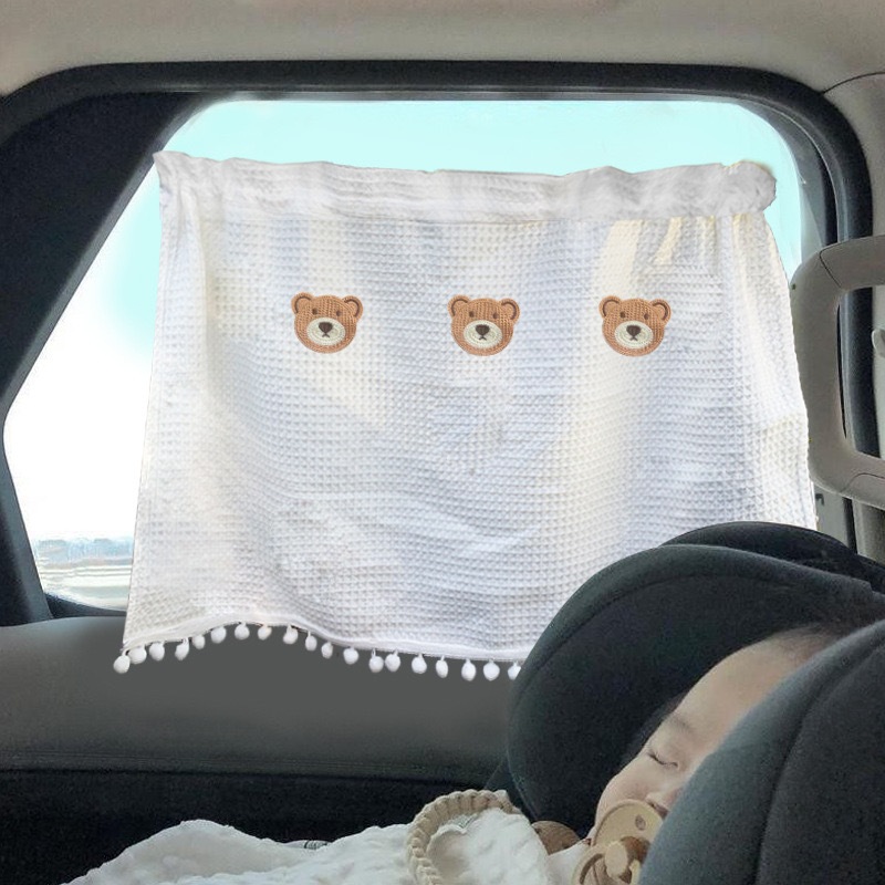 Rèm Che Nắng Xe Ô Tô - Vải Cotton - Hoạ Tiết Dễ Thương Có Giác Hút Gắn Kính Xe Hơi