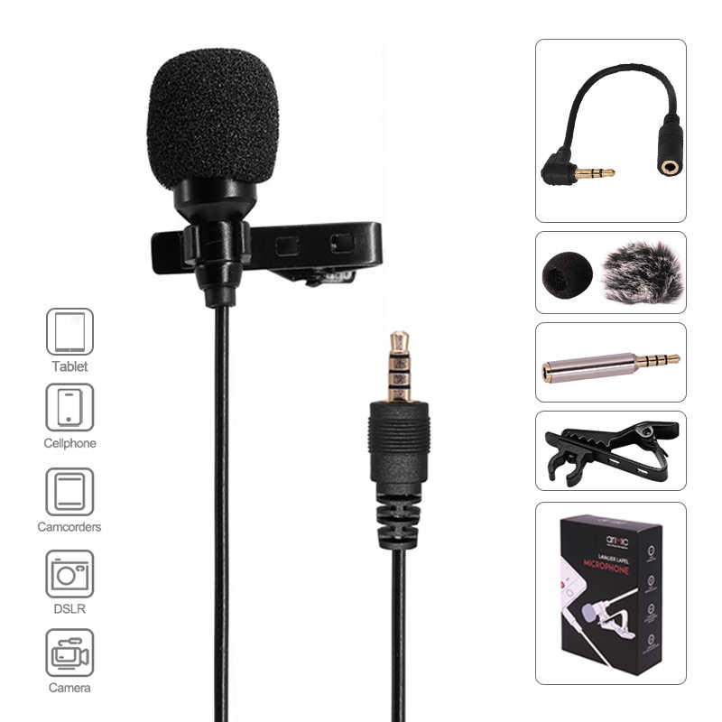 ✨ROGTZ - Micro thu âm Arimic cài áo Thu âm đa hướng Dây mềm 1.5m Tương thích Điện thoại, Máy ảnh Bông lọc micro Giắc cắm 3.5mm TRRS Adapter 4 khấc Túi da đựng - Hàng chính hãng