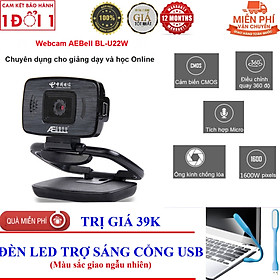 ✨ROGTZ - Webcam học Online cho máy tính AEBell BL-U22W Độ phân giải HD 720P Micro thu âm đa hướng Quay 360 độ Trục xoay linh hoạt Chỉnh sáng thông minh Cáp dài 1,5m USB 2.0 Tương thích nhiều HĐH Dễ cài đặt Dễ sử dụng - Hàng Chính Hãng