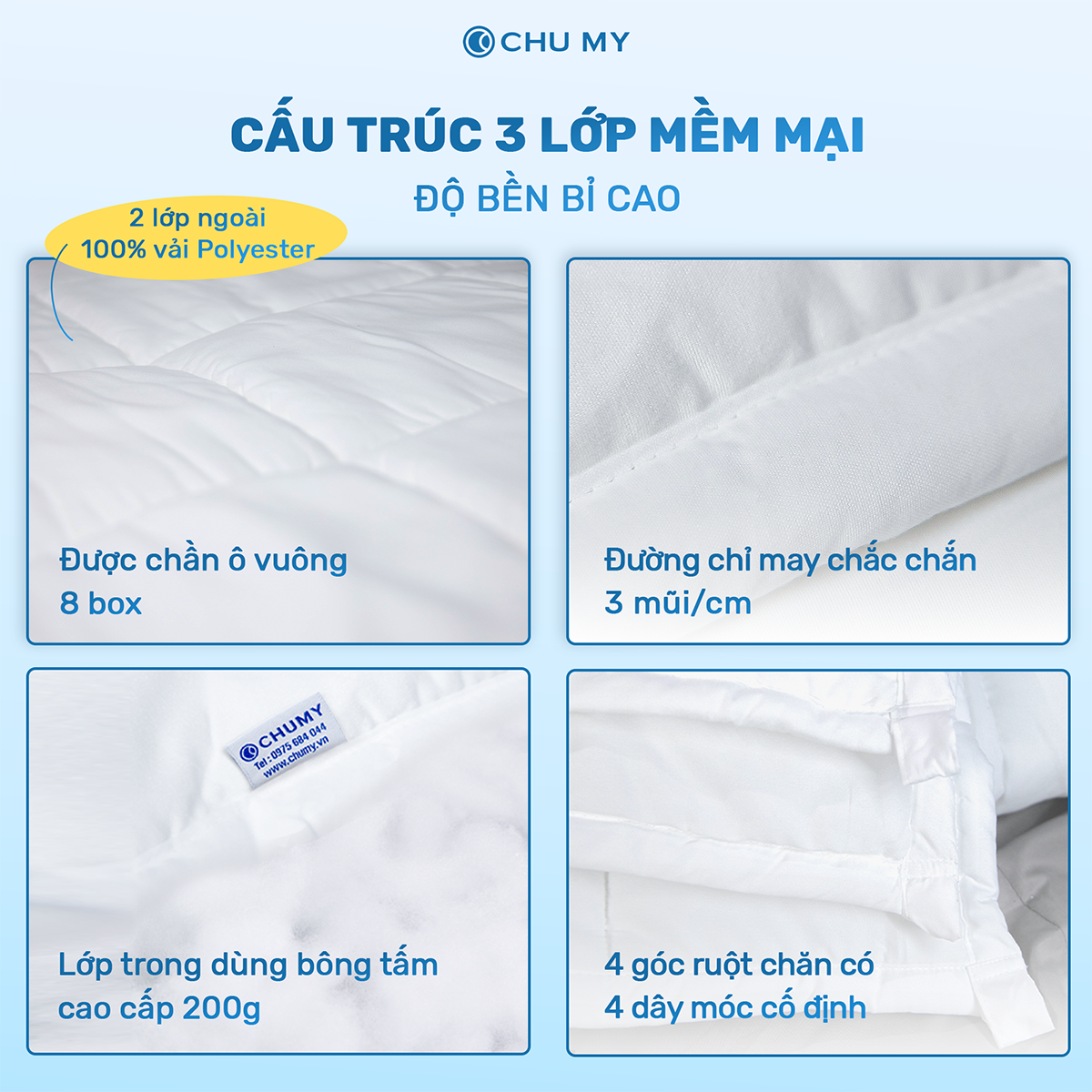 - Ruột chăn hè mỏng, nhẹ sẽ rất cần thiết khi bạn nằm phòng điều hòa trong những ngày nóng bức - Ruột chăn trần ô trám tỷ mỉ và cẩn thận - Ruột chăn