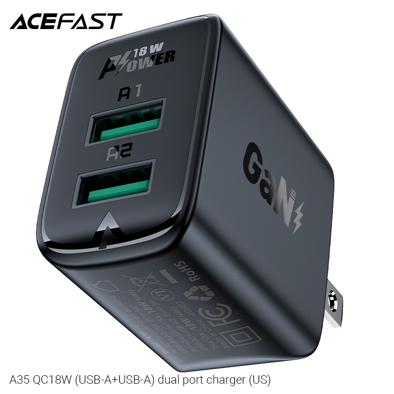 ✨Sạc Acefast QC18W 2 cổng USB-A (US) - A35 Hàng chính hãng Acefast