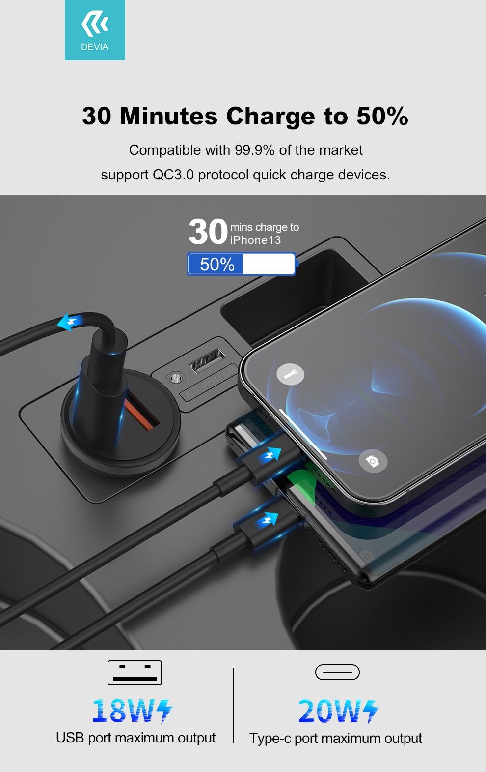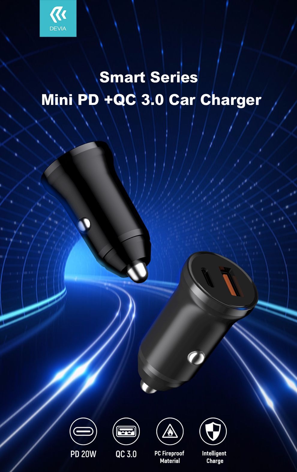 ✨Sạc trên xe hơi Devia Mini hỗ trợ sạc nhanh PD + QC (20W)- Hàng chính hãng