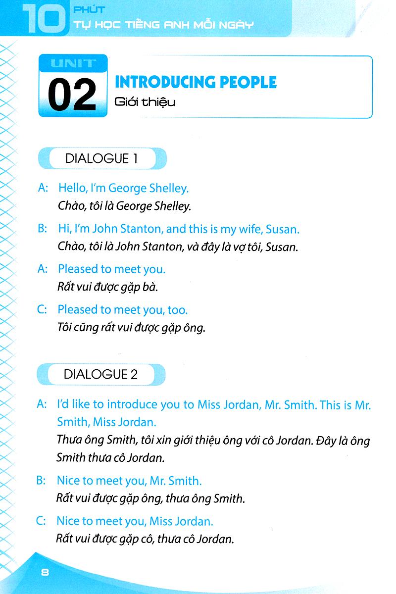 Hãy bắt đầu học tiếng Anh chỉ 10 phút mỗi ngày và hãy học khi bạn muốn học. Tác giả tin rằng sau một thời gian luyện tập, các bạn có thể tự tin giao tiếp bằng tiếng Anh như người bản ngữ.