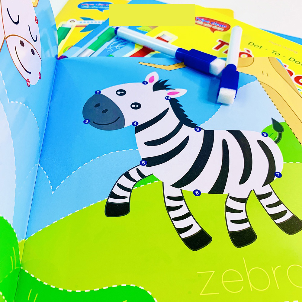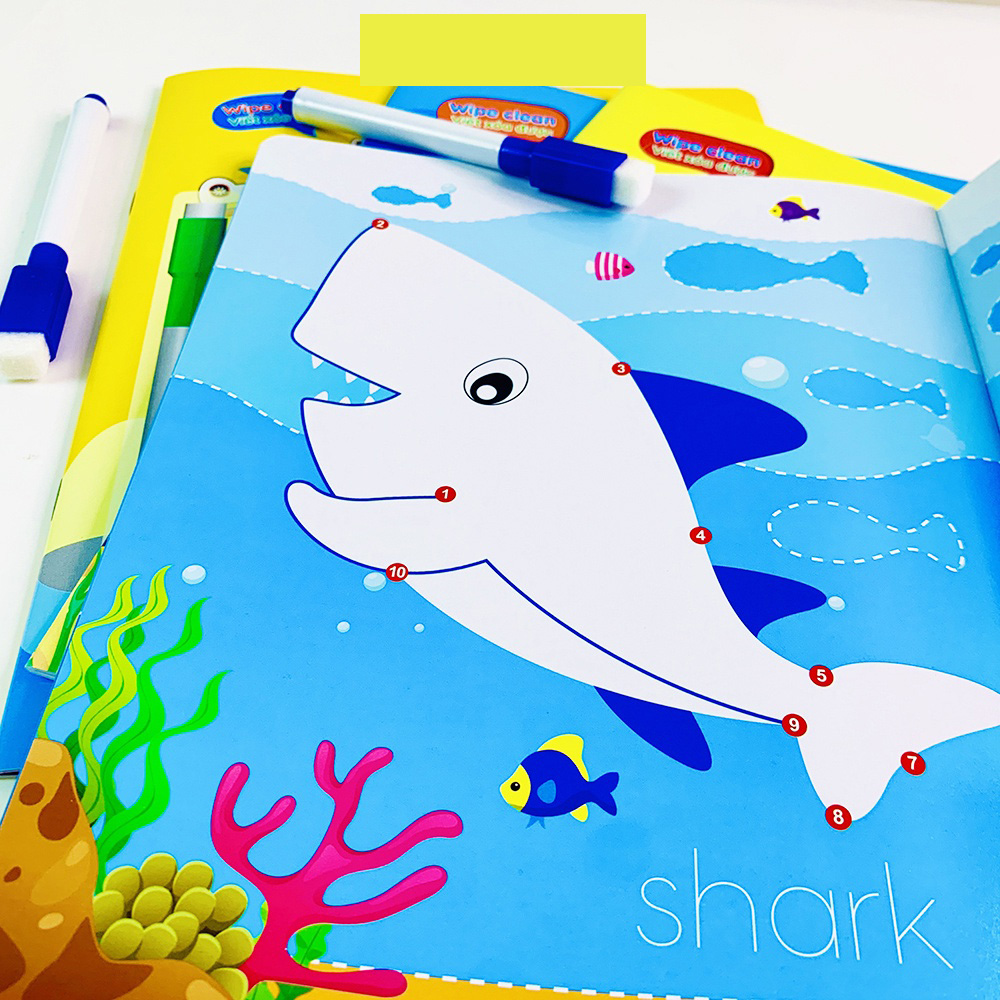 Sách - Bộ 4 quyển viết xóa được Wipe Clean trò chơi nối số tìm kiếm thông minh luyện viết không sợ sai✿ Vở Trò chơi phát triển trí tuệ, tìm kiếm thông minh, trò chơi nối số luyện kĩ năng đếm hình, đếm...