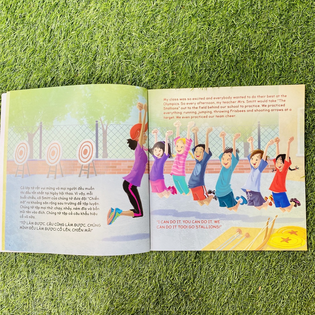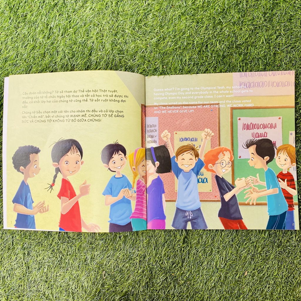 Tớ sẽ tham dự Thế vận hội! Thật tuyệt, trường của tớ tổ chức Ngày hội thể thao và tất cả học trò toàn trường sẽ được thi đấu. Đội lớp tớ chọn tên là Chiến mã, vì chúng tớ mạnh mẽ, chúng tớ sẽ gắng sức, và chúng tớ không bỏ cuộc.