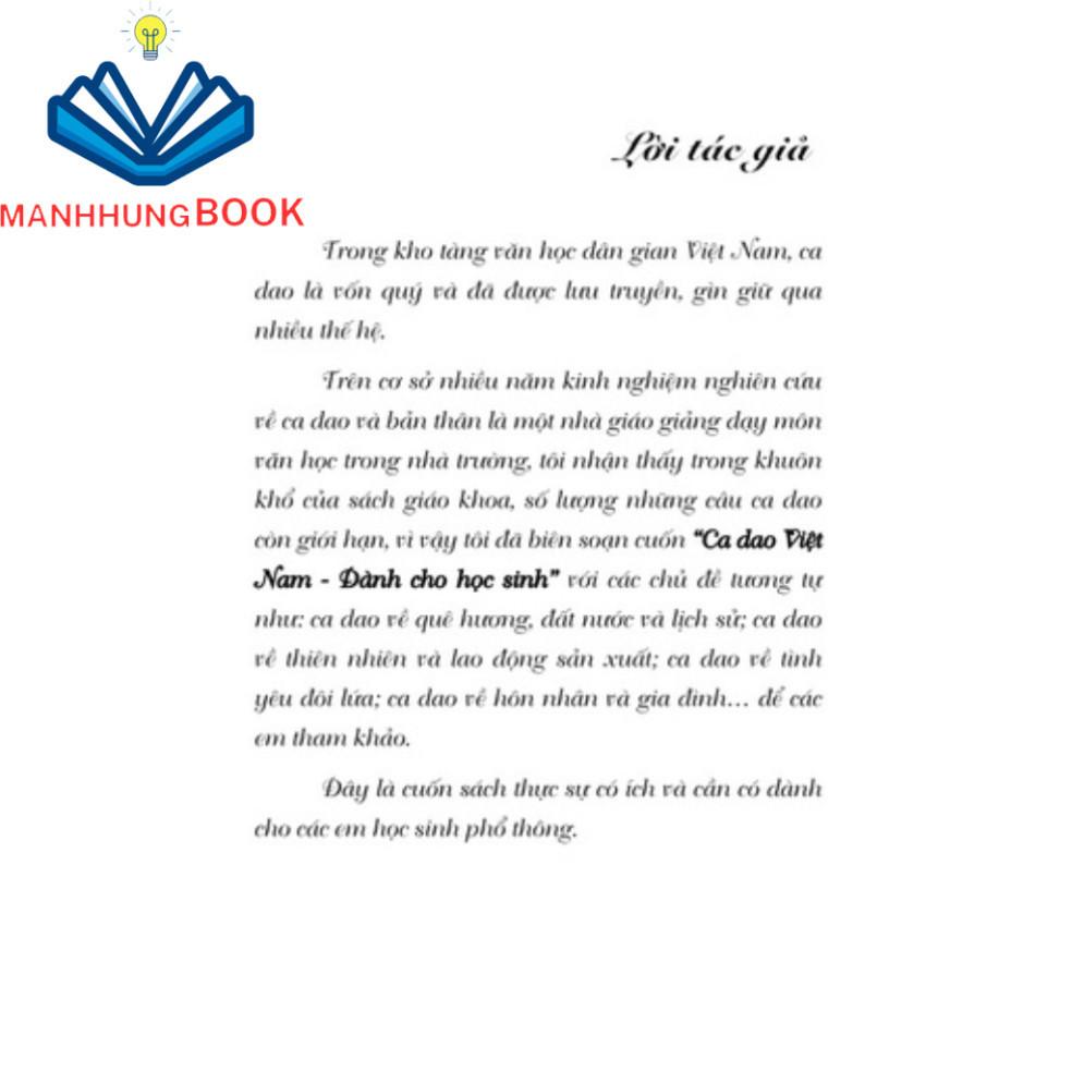 Tục ngữ, ca dao là phần phong phú nhất trong văn học dân gian của dân tộc ta. Cuốn sách Tục ngữ ca dao Việt Nam tuyển chọn và giới thiệu các tục ngữ, ca dao của người Kinh, từ những câu tục ngữ đúc kết những kinh nghiệm sống, kinh nghiệm sản xuất, kinh nghiệm xã hội lịch sử của nhân dân lao động xưa truyền lại cho đến những câu ca dạo ca ngợi về đất nước, lịch sử, ca ngợi những danh lam thắng cảnh, những đặc sản của các địa phương truyền thống, truyền thống chống giặc ngoại xâm, chống ách áp bức phong kiến của nhân dân, ca dao về tình yêu đôi lứa.