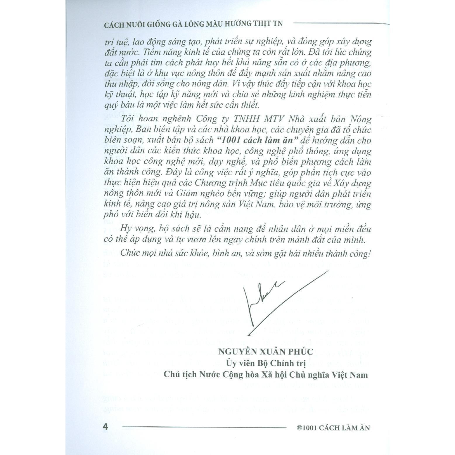 Mua tại TiktokCông ty TNHH MTV Nhà xuất bản Nông nghiệp, Ban biên tập và các nhà khoa học, các chuyên gia đã tổ chức biên soạn, xuất bản bộ sách "1001 cách làm ăn" để hướng dẫn cho người dân các kiến thức khoa học, công nghệ phổ thông, ứng dụng khoa học công nghệ mới, dạy nghề, và phổ biến các cách làm ăn thành công. Cuốn sách "Cách Nuôi Giống Gà Lông Màu Hướng Thịt TN" gồm 4 phần;