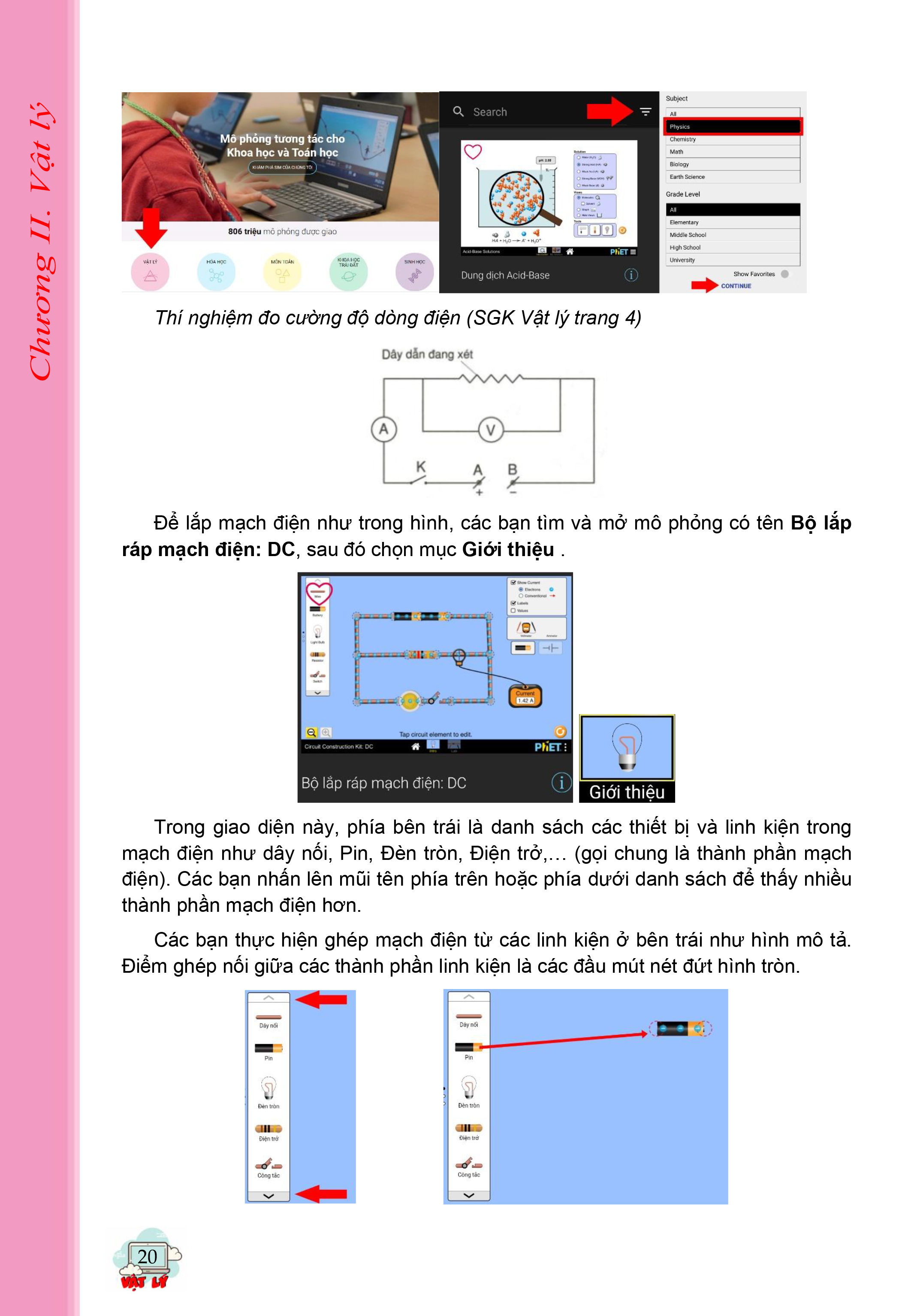 Tại chương 2, chúng ta sẽ cùng tìm hiểu và thực hành những mô hình thí nghiệm ảo ngay trong chính không gian xung quanh. Chỉ với một chiếc máy tính hay một thiết bị di động, bạn có thể trực tiếp lắp ráp mạch điện, tiến hành các mô phỏng điện từ trường, quang học...