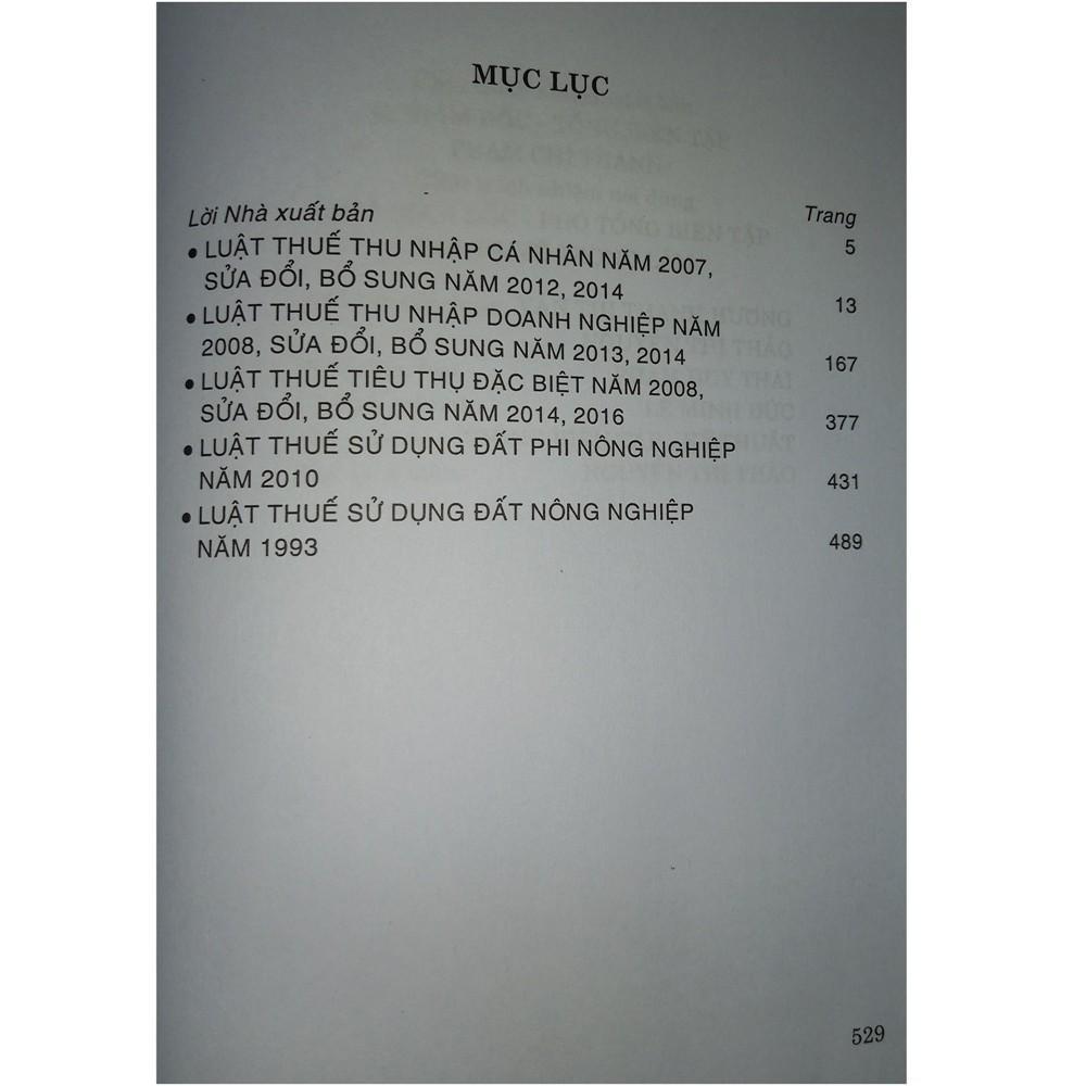 Thuế là một lĩnh vực phức tạp, hiện nay hệ thống pháp luật về thuế của Việt Nam được quy định trong nhiều loại văn bản quy phạm pháp luật khác nhau (luật, nghị định, thông tư,...) với nhiều lần sửa đổi, bổ sung ban hành mới. Điều đó dẫn đến việc theo dõi, nắm bắt thông tin pháp luật về thuế không dễ dàng. Chính vì vậy, Nhà xuất bản Chính trị quốc gia Sự thật xuất bản cuốn sách Chỉ dẫn pháp luật về một số lĩnh vực thuế. Cuốn sách tập trung chỉ dẫn hệ thống pháp luật về 05 lĩnh vực thuế quan trọng, bao gồm: thuế thu nhập cá nhân, thuế thu nhập doanh nghiệp, thuế tiêu thụ đặc biệt, thuế sử dụng đất phi nông nghiệp và thuế sử dụng đất nông nghiệp