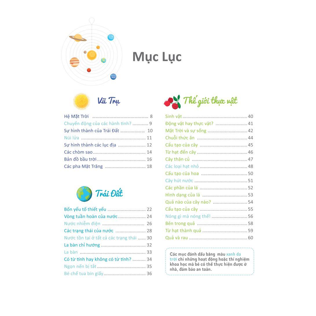 Trước hết, trẻ được bắt đầu khám phá về Trái Đất và Vũ trụ, một chuyến du hành trong không gian và thám hiểm Hệ Mặt Trời.