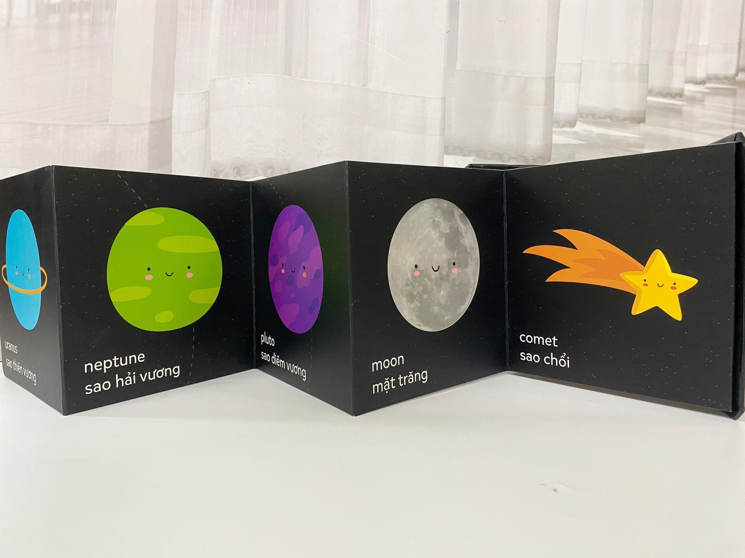 Sách dạng zigzag board book, giúp bé mở rộng từ vựng tiếng Anh, nhận biết các chòm sao.