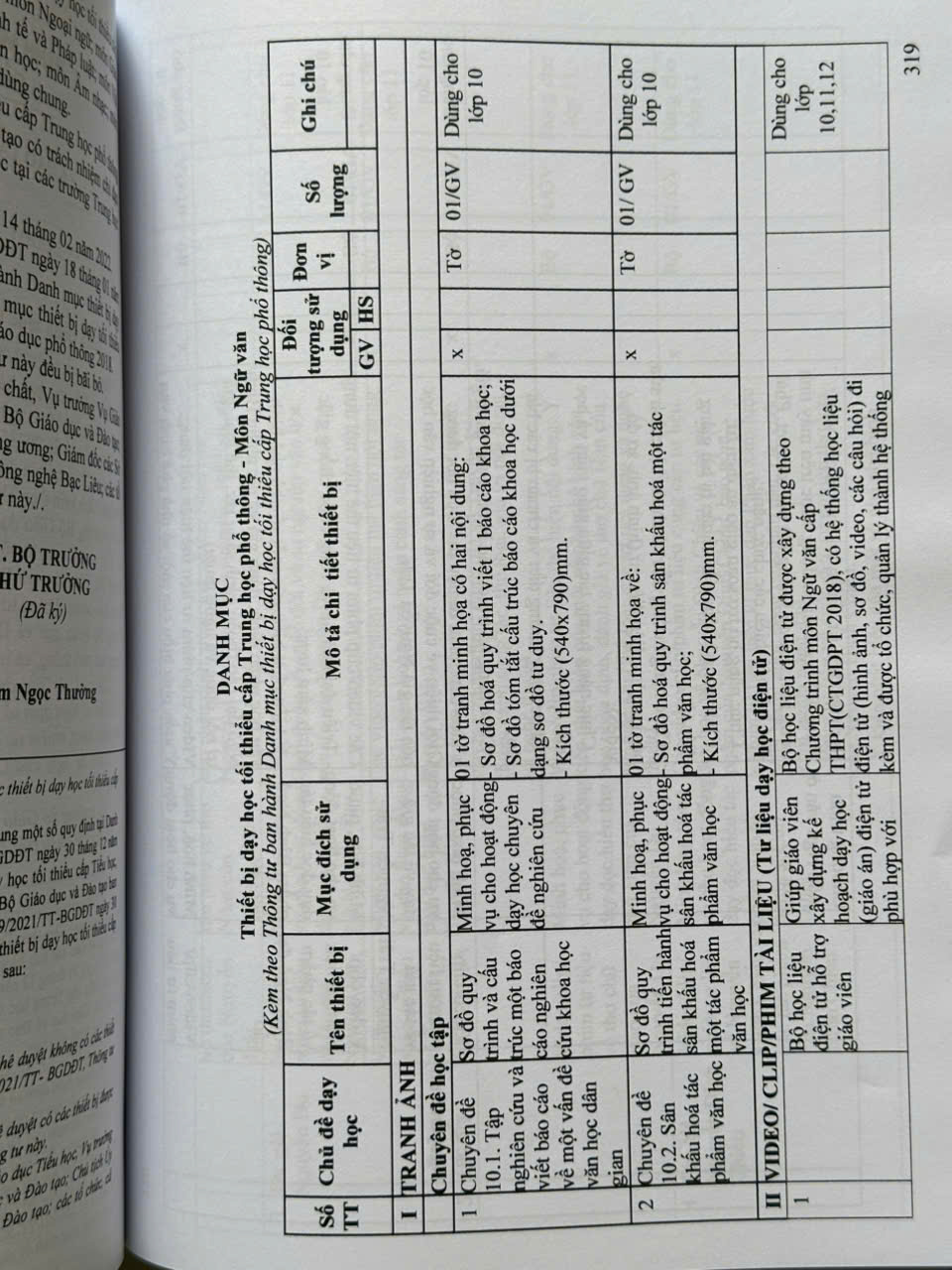 Phần thứ ba: Danh mục thiết bị dạy học tối thiểu cấp trung học phổ thông