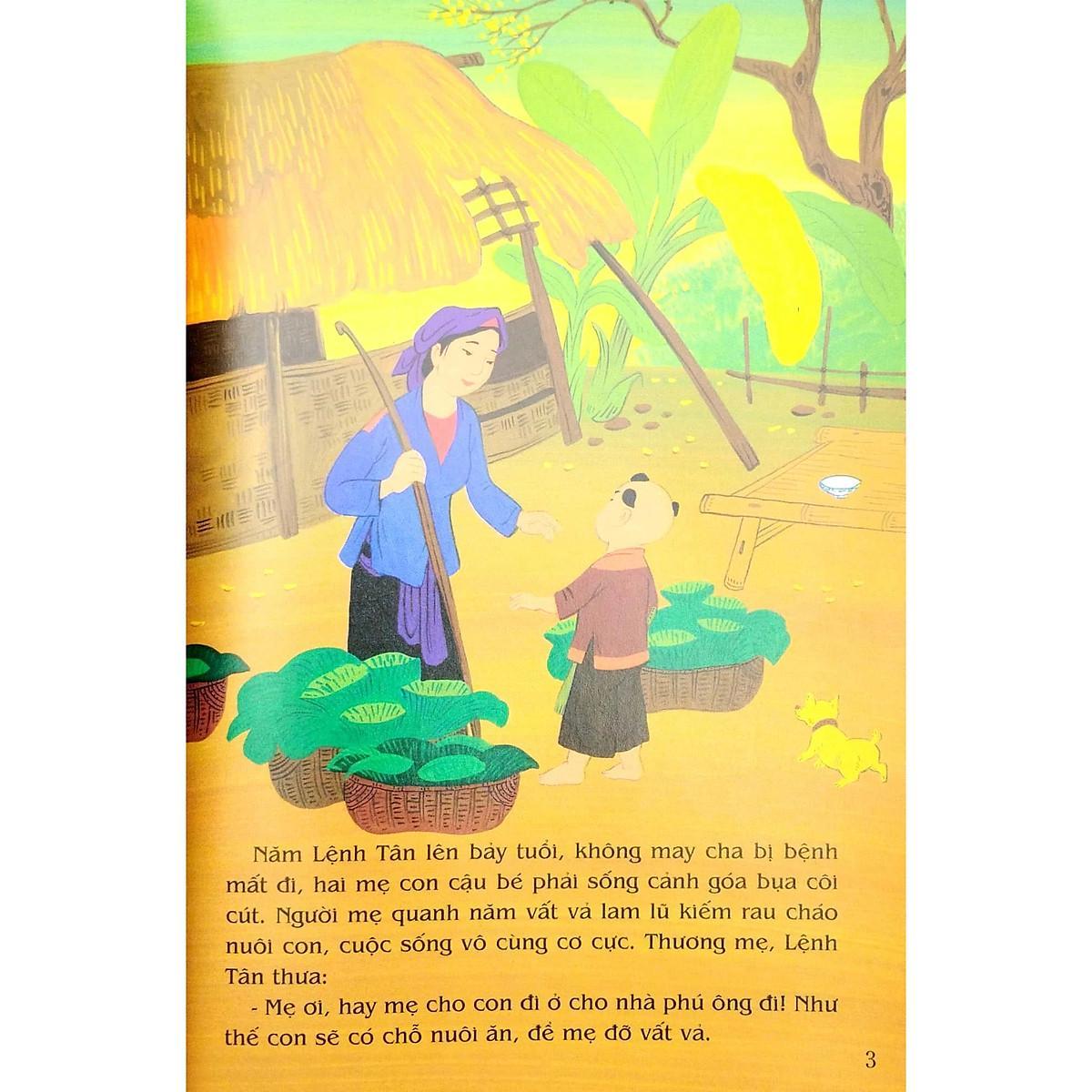 Cậu bé Lệnh Tân mồ côi cha, phải đi ở cho nhà phú ông. Những tưởng một người đi ở thì chỉ có việc quần quật lam làm. Nhưng không, chính từ nhà chủ, Lệnh Tân đã được biết đến chữ nghĩa thánh hiền. Và rồi sau này, Lệnh Tân trở thành một ông quan to trong triều Lê. Câu chuyện về cậu bé Lệnh Tân hiếu học cũng là lời khích lệ các em cố gắng vươn lên trong học tập, để mai sau thành người có ích…