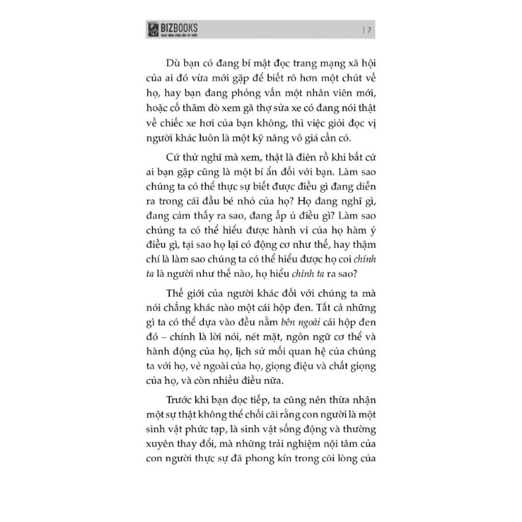 Mua tại TiktokSách - Đọc Vị Con Người Như Đọc Một Cuốn Sách - Sách Hướng Nghiệp Và Phát Triển Bản Thân - MCBooks Lưu ý: Chỉ có sách chính hãng của Bizbooks mới có thể quét mã QR-code để nhận các bản Audiobooks - Sách nói đi kèm Nội dung cuốn Sách Đọc Vị Con Người Như Đọc Một Cuốn Sách - Bizbooks Sau khi đọc xong cuốn sách này, bạn sẽ biết: