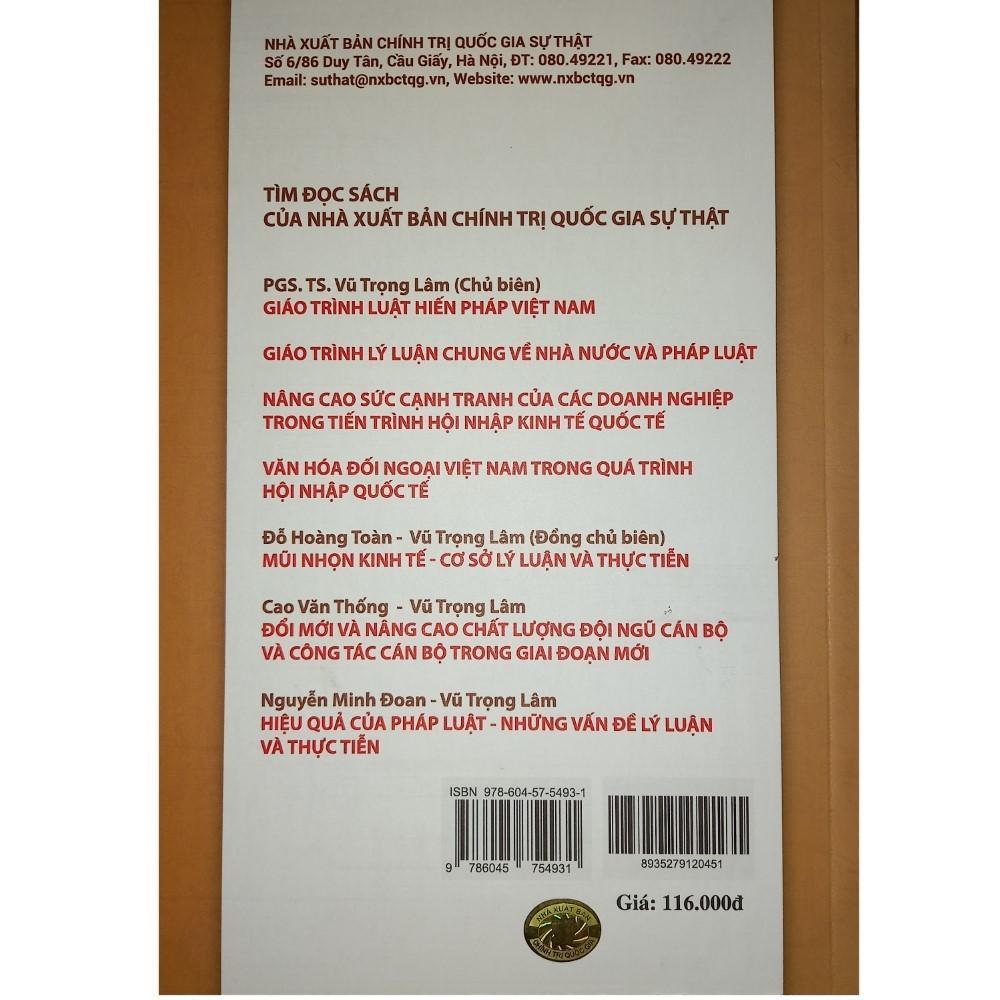 Cuốn sách chuyên khảo Đổi mới sự lãnh đạo của Đảng trong điều kiện xây dựng Nhà nước pháp quyền xã hội chủ nghĩa ở Việt Nam của PGS. TS. Vũ Trọng Lâm trình bày cơ sở lý luận về đổi mới sự lãnh đạo của Đảng trong điều kiện xây dựng Nhà nước pháp quyền xã hội chủ nghĩa Việt Nam; phân tích thực trạng sự lãnh đạo của Đảng trong điều kiện xây dựng Nhà nước pháp quyền xã hội chủ nghĩa Việt Nam hiện nay; trên cơ sở đó, đưa ra các quan điểm và giải pháp chủ yếu về đổi mới sự lãnh đạo của Đảng đáp ứng yêu cầu xây dựng Nhà nước pháp quyền xã hội chủ nghĩa Việt Nam.