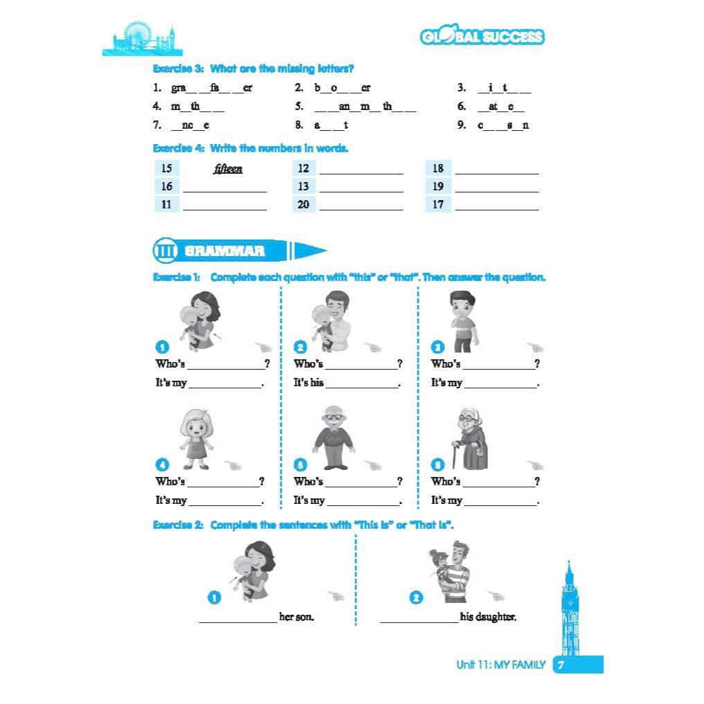 +Phần bài tập cơ bản: được thiết kế để giúp các em củng cố và hiểu sâu hơn về kiến thức Tiếng Anh được học trong từng đơn vị bài học trên lớp. Các bài tập ở phần này giúp các em áp dụng những kiến thức đã học vào các tình huống thực tế, từ vựng, ngữ pháp đến rèn luyện các kỹ năng đọc viết, giao tiếp.