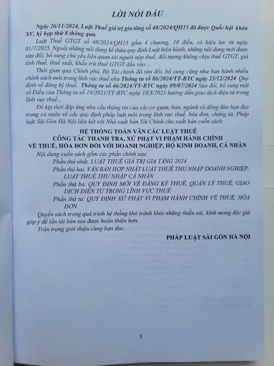 Để kịp thời đáp ứng nhu cầu thông tin của các cơ quan, ban, ngành và đông đảo bạn đọc trong cả nước về các quy định pháp luật mới trong lĩnh vực thuế, hóa đơn, chứng từ, Nhà sách Nam Việt xin trân trọng giới thiệu cuốn sách: Hệ Thống Toàn Văn Các Luật Thuế – Công Tác Thanh Tra, Xử Phạt Vi Phạm Hành Chính Về Thuế, Hóa Đơn Đối Với Doanh Nghiệp, Hộ Kinh Doanh, Cá Nhân