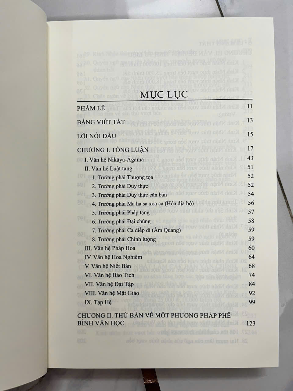 Sơ thảo II. Sơ Thảo I gồm có 7 chương. Chương I: Tổng luận đề cập tới tình hình tổng quát của điển tịch Phật giáo cho đến năm đó. Chương II: Thử bàn về một phương pháp phê bình văn học nhằm xác định những văn bản nào có thể được xem là phản ảnh trung thực nhất về lời dạy của Đức Phật. Chương III: chúng tôi chọn văn hệ Bát nhã làm đối tượng nghiên cứu của phương pháp phê bình mới này. Cho nên, chúng tôi tiến hành mô tả tình hình tư liệu của văn hệ, mà ta biết cho tới lúc ấy với nhan đề Vấn đề hiện tình tư liệu. Chương IV: công bố một số biểu nhất lãm về các tư liệu đó. Chương V: đề cập những nguồn tư liệu khác nhau của văn hệ Bát nhã và những bàn cãi trong quá khứ về vấn đề văn bản nào đã xuất hiện sớm nhất. Chương VI: bàn về nguốn gốc xuất xứ của các văn bản này. Chương VII: đề cập tới một vấn đề tương đối nhạy cảm trong Phật giáo đó là lý thuyết tổ chức của các giáo đoàn Phật giáo, mà khi phân tích nội dung của văn hệ