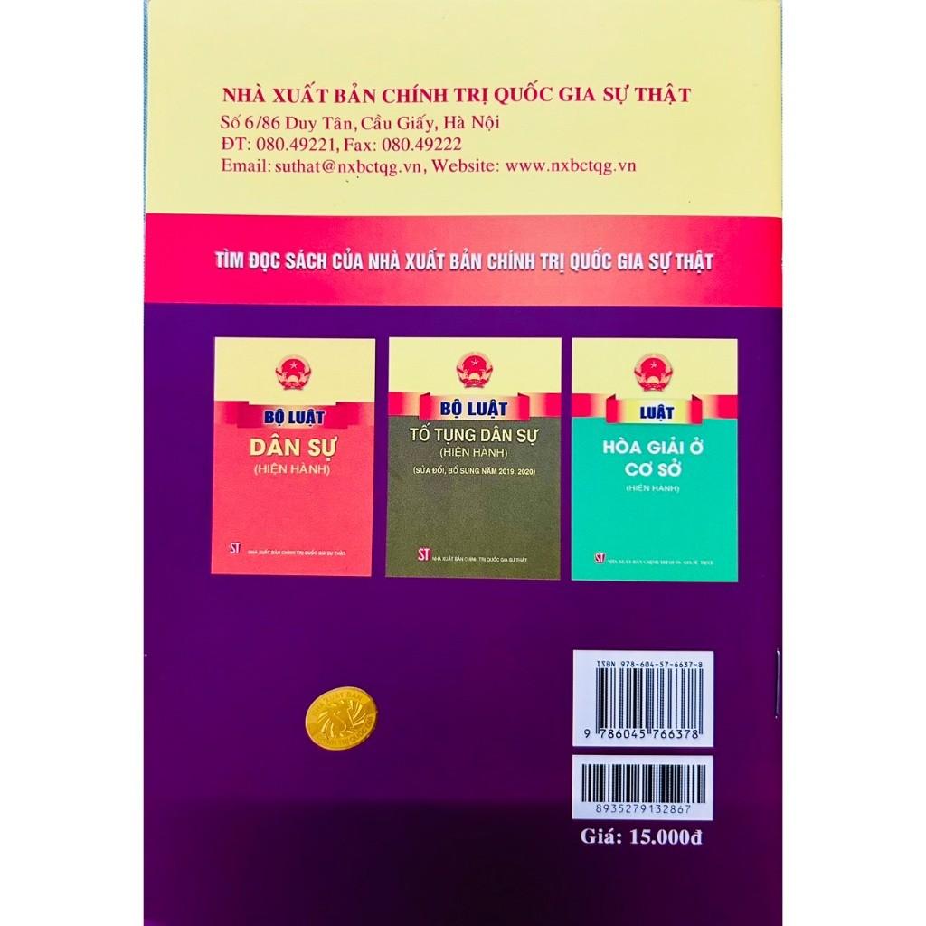 Mua tại TiktokSách - Luật Hòa Giải, Đối Thoại Tại Tòa Án (Hiện Hành) Tác giả: Quốc Hội Nhà xuất bản:Chính Trị Quốc Gia Sự Thật Khổ sách: 13 x 19 cm Năm phát hành: 2021 Công ty phát hành: NXB Tư Pháp Giá bìa: 15.000 đ Số trang: 55 trang Hình thức bìa: Bìa mềm Luật này được Quốc hội nước Cộng hòa xã hội chủ nghĩa Việt Nam khóa XIV, kỳ họp thứ 9 thông qua ngày 16 tháng 6 năm 2020. Luật này có hiệu lực thi hành từ ngày 01 tháng 01 năm 2021