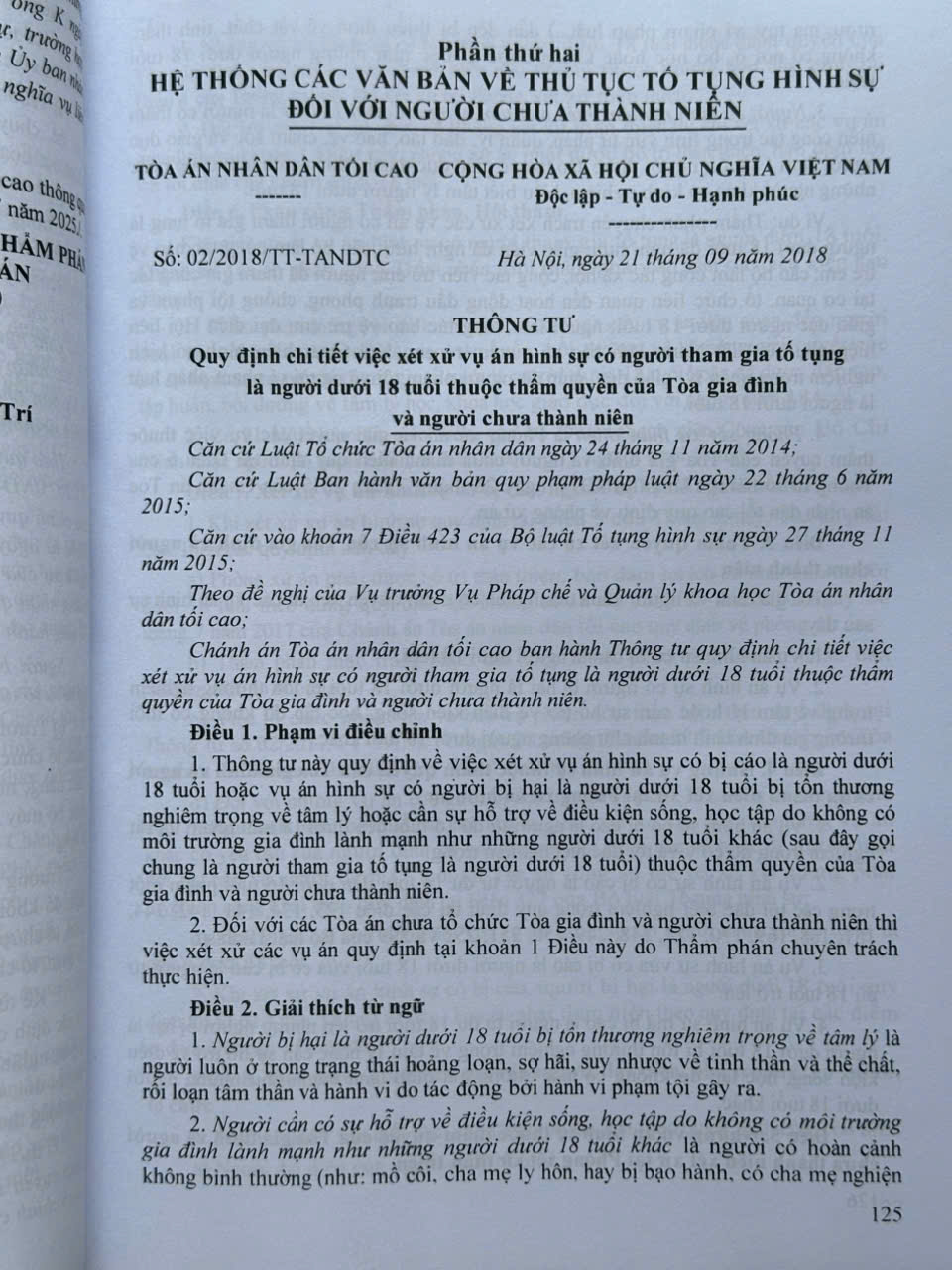 Phần thứ hai. HỆ THỐNG CÁC VĂN BẢN VỀ THỦ TỤC TỐ TỤNG HÌNH SỰ ĐỐI VỚI NGƯỜI CHƯA THÀNH NIÊN