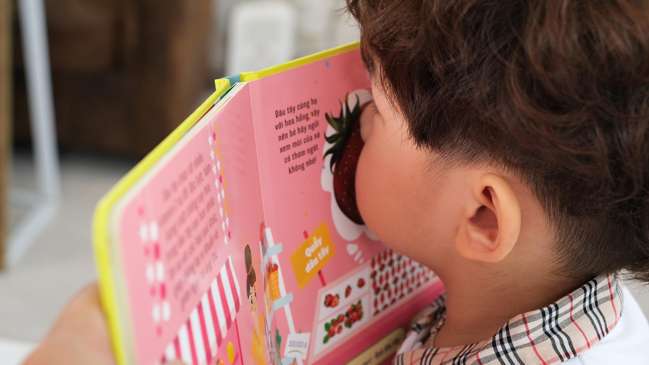 - Trong mỗi cuốn sẽ có hình ảnh, màu sắc và đặc biệt là mùi vị của các loại hoa quả, trái cây quen thuộc với trẻ
