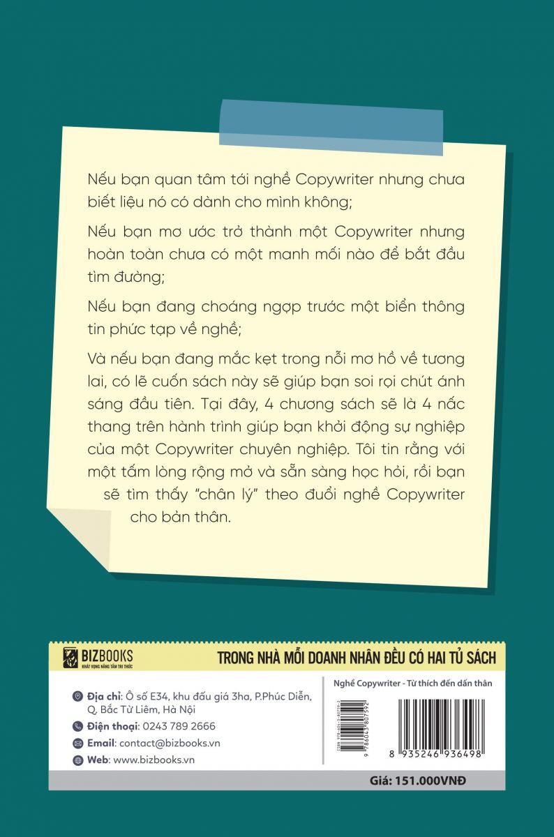 Tên sản phẩm: Sách Bizbooks - Nghề Copywriter - Từ thích đến dấn thân - Tất tần tật từ A đến Z dành cho Newbie