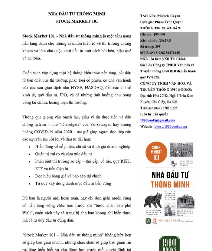 Giới thiệu ngắn: "Stock Market 101 – Nhà đầu tư thông minh" là cuốn sách nhập môn toàn diện, giúp người đọc hiểu rõ cách thị trường chứng khoán vận hành, từ đó đưa ra