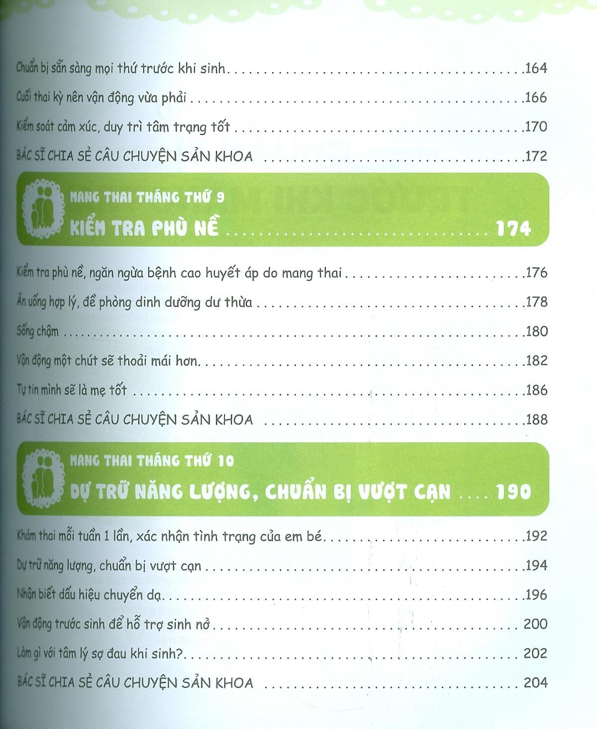 Với kinh nghiệm của một bác sĩ trưởng khoa Sản, tác giả sẽ chia sẻ chi tiết với bạn về những việc cần làm và cần lưu ý ở mỗi tháng mang thai. Nếu bạn là mẹ bầu và đang lo lắng không biết nên ăn gì, tập thể dục thế nào để vừa giữ được vóc dáng vừa không sợ ảnh hưởng đến con, lo ốm nghén làm con thiếu chất, lo tiểu đường thai kỳ và các biến chứng nguy hiểm, lo con bị dị tật bẩm sinh, lo trầm cảm u uất, lo m.ình sức khỏe kém khó sinh thường,… Tất tần tật các nỗi lo của mẹ bầu đều được bác sĩ tư vấn và giải quyết qua từng trường hợp bệnh án Sản khoa điển hình, được viết trong cuốn sách này.