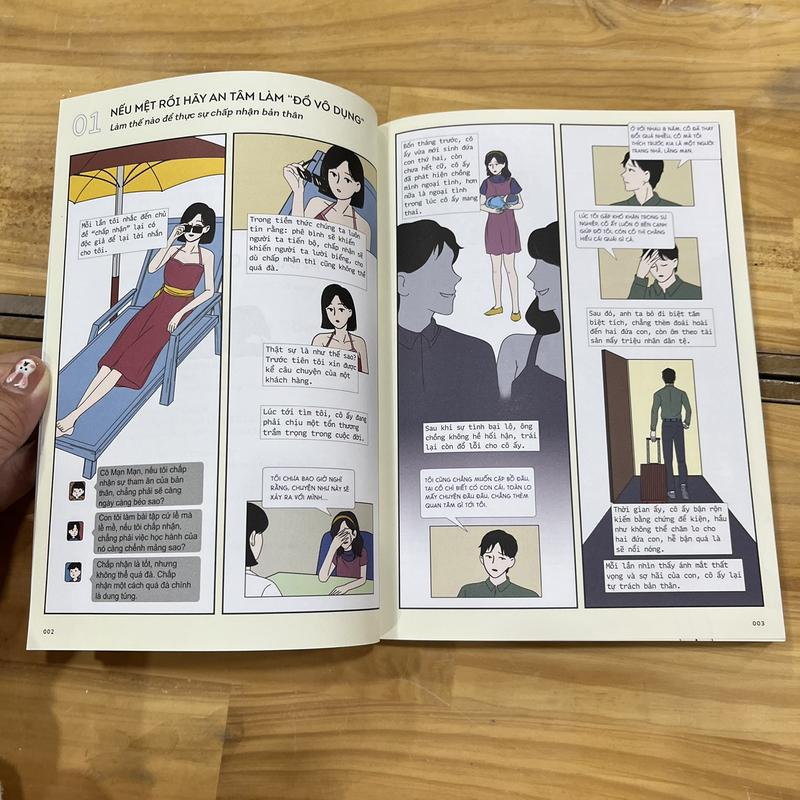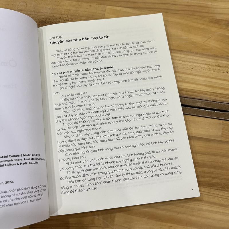 Mua tại TiktokTác giả: Nhóm tư vấn Từ Mạn Mạn Dịch giả: Lục Bích Nhà xuất bản: Hà Nội Kích thước: 15x21cm Số trang: 232 Ngày phát hành: 2024 Hình thức: Bìa Mềm Đơn vị phát hành: Nhã Nam CUỐN SÁCH VỚI ĐẦY NHỮNG CÂU CHUYỆN VÀ MINH HỌA DỄ THƯƠNG NÀY SẼ LÀ CÔNG CỤ ĐẮC LỰC GIÚP BẠN CHẤP NHẬN BẢN THÂN! Tôi tên Từ Mạn Mạn, là một nhà tư vấn tâm lý giúp bạn chữa lành cảm xúc và chấp nhận bản thân. Tôi muốn mời bạn cùng tôi luyện tập một động tác: Giơ hai tay, bắt tréo nhau ôm lấy chính mình, vỗ vỗ lên vai, sau đó tự nhủ: "Trong quá khứ, mình đã làm rất giỏi rồi. Phần còn lại, mình thật sự có thể từ từ làm."