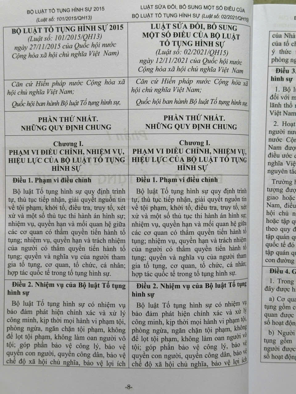 Phần I. So sánh đối chiếu Bộ luật Tố tụng hình sự 2015 – 2021