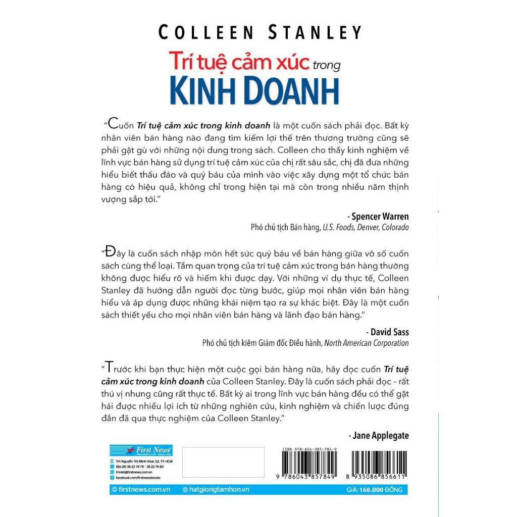 "Trí tuệ cảm xúc trong kinh doanh” của tác giả Colleen Stanley ra đời nhằm cung cấp các phương pháp bán hàng giúp bạn mài giũa những kỹ năng mềm trong công việc, cách giải quyết các vấn đề một cách khéo léo, đồng thời xây dựng mối quan hệ mang lại giá trị cho đôi bên.