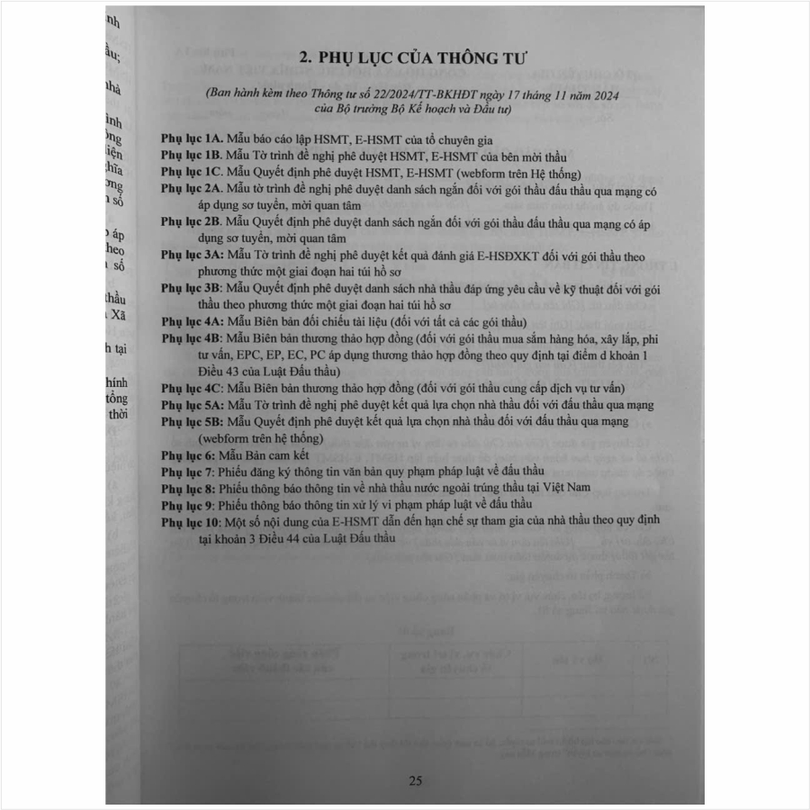 Thông tư 22/2024/TT-BKHĐT cung cấp 42 mẫu hồ sơ chuẩn hóa (Từ Mẫu 1A tới Mẫu 14D) và 17 phụ lục (Từ Phụ lục 1A- Phụ lục 10), chính thức có hiệu lực từ 01/01/2025 (một phần hiệu lực từ 01/12/2024).